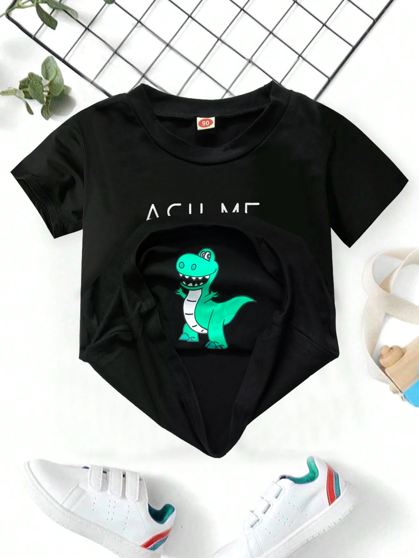 Baby boy cotton t-shirts, short sleeve tees, funny toddler shirts for boys letter print round neck shirts with cute graphic designs inside make your baby more attractive. Cute dino shirt boys toddler cow shirt outfits clothes, fashionable and comfortable, good for daily time and party suitable for a holiday party, first communion, ceremony, baptism, birthday, pageant and school, etc.